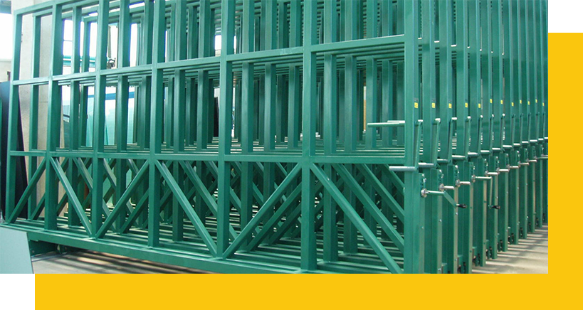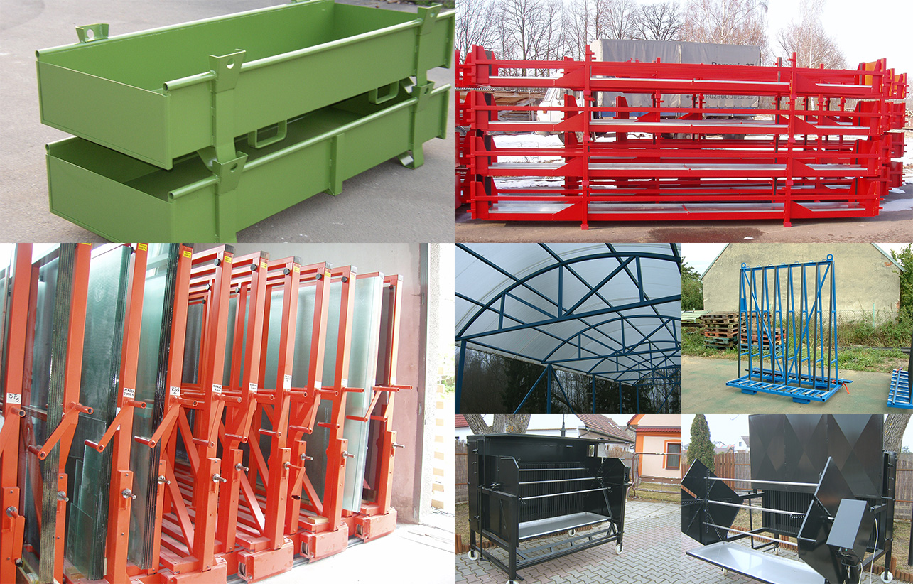 Nedílnou součástí naší produkce je výroba manipulační a skladové techniky jako jsou palety a kontejnery pro firmy zaobírající se výrobou skla, oken a pod.
